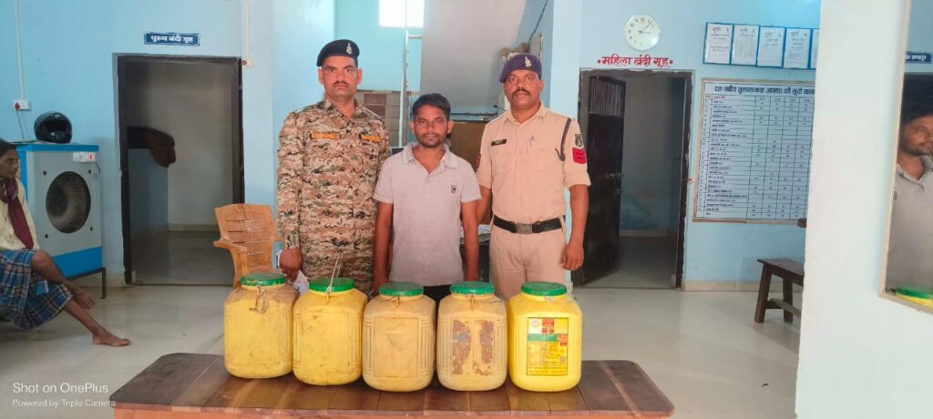मुंगेली पुलिस द्वारा नशे के विरूद्ध लगातार कार्यवाही की जा रही है। इसी क्रम में थाना जरहागांव द्वारा मुखबिरों से सूचना पर ग्राम अमलीकापा में अवैध रूप से शराब बिक्री एवं भंडारण करने वाले आरोपी जयकुमार उर्फ जैलू बंजारे के घर में दबिश देकर 50 लीटर अवैध महुआ शराब जप्त कर आरोपी के विरूद्ध आबकारी एक्ट 34(2), 59क के तहत कार्यवाही करते हुए आरोपी को न्यायिक अभिरक्षा में जेल भेजा गया।