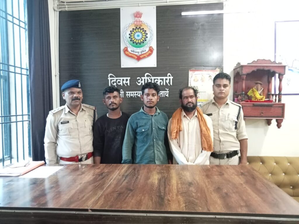 आशीष कश्यप बिलासपुर :-मामले का संक्षिप्त विवरण इस प्रकार है कि दिनांक 06.09.2024 को प्रार्थी अरमान खान पिता इसराईल खान उम्र 23 वर्ष निवासी मुरूमखदान अशोक नगर ने रिपोर्ट दर्ज कराया कि दिनांक 06.09.24 के शाम करीब 04.00 बजे छोटू खान, आरिफ खान, जीलो खान महामाया आईटीआई के पास बुलाने पर वहां गया। जहां पहुंचते ही सभी अचानक अश्लील गाली गलौच करने लगे जिन्हे मना करने पर हाथ, खुखरी आदि से मारपीट करने लगे। छुड़ाने का प्रयास करते हुये चिल्लाने पर आवाज सुनकर मेरे परिजन एवं अन्य लोग आये तो सभी लोग छोड़कर भाग गये हैं। प्रार्थी के उक्त रिपोर्ट पर अप.क्र. – 1013/2024 पंजीबद्ध कर विवेचना में लिया गया। घटना की गंभीरता को देखते हुये घटना की सूचना पुलिस अधीक्षक महोदय श्री रजनेश सिंह(भापुसे) को दिया गया, जिनके द्वारा आरोपियों को तत्काल गिरफ्तार कर वैधानिक कार्यवाही करने निर्देशित किया गया। जिसके परिपालन में अति. पुलिस अधीक्षक (शहर) श्री उमेश कश्यप, सी.एस.पी. सरकंडा श्री सिद्धार्थ बघेल के दिशा निर्देशन में थाना प्रभारी सरकण्डा निरी. तोपसिंह नवरंग के नेतृत्व में टीम तैयार कर आरोपीगण छोटूखान उर्फ मुस्तकीम खान, आरिफ खान एवं जीलानी खान को अशोक नगर मुरूम खदान में घेराबंदी कर पकड़ा गया। जिनसे घटना के संबंध में पूछताछ करने पर घटना कारित करना स्वीकार किया एवं घटना में प्रयुक्त खुखरी आरोपी आरिफ खान से जप्त कर आरोपियों को विधिवत् गिरफ्तार कर न्यायिक रिमाण्ड पर भेजा गया है।