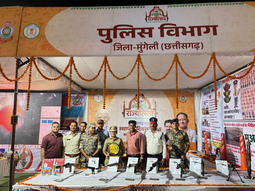 तिजराम साहू ब्यूरो मुंगेली छत्तीसगढ़ राज्य स्थापना दिवस के अवसर पर दिनांक 05.11.2024 को शहीद धनंजय सिंह राजपूत स्टेडियम मुंगेली में जिला स्तरीय राज्योत्सव का आयोजन किया गया था जिसमें जिले में पुलिस एवं प्रशासन के 28 विभागों के स्टॉल लगाये गये थे जिसमें विभाग से संबंधित जानकारियां दी जा रही थी। मुंगेली शहर के आसपास के ग्रामीण क्षेत्रों के बड़ी संख्या में आम जनता इस कार्यक्रम में शामिल होकर शासन के योजनाओं के संबंध में जानकारियां विभागों के अधिकारी एवं कर्मचारियों से सीधे प्राप्त कर रहे थे। इस तारतम्य में पुलिस विभाग द्वारा भी अपना स्टॉल लगाया गया था जिसमें साइबर सेल द्वारा साइबर अपराध के संबंध में जानकारी एल0ई0डी0 में फोटो वीडीयो के माध्यम से एवं पॉम्प्लेट वितरण कर लोगों को साइबर अपराध से बचाव हेतु जानकारी दी गई। यातायात शाखा द्वारा भी यातायात संबंधी जानकारी पाम्प्लेट एवं इन्टूमेंट के माध्यम से दी जा रही थी। रक्षित निरीक्षक श्रीमती नरगिस तिग्गा के नेतृत्व में पुलिस विभाग के शस्त्रों एवं बॉडीगार्ड, जाली हेलमेट एवं अन्य सुरक्षा उपकरणों की जानकारी प्रर्दशनी के माध्यम से दी जा रही थी। जिसका आम जनता द्वारा अच्छा प्रतिषाद मिला। उपरोक्त स्टॉलों में पुलिस विभाग के स्टॉल द्वितीय उत्कृष्ट स्टॉल हेतु चुना गया। मंचीय कार्यक्रम में मुख्य अतिथि माननीय विधायक श्री पुन्नू लाल मोहले, कलेक्टर श्री राहुल देव, पुलिस अधीक्षक श्री भोजराम पटेल, जिला पंचायत सी0ई0ओ0 प्रभाकर पाण्डेय एवं जिले के वरिष्ठ अधिकारी एवं गणमान्य नागरिक उपस्थित थे। उनकी उपस्थिति में जिले के निरीक्षक श्री एन0बी0सिंह0, संजय सिंह राजपूत एवं आरक्षक अब्दुल रियाज, भेसज पाण्डेकर, राकेश बंजारे, महेन्द्र सिंह ठाकुर को अच्छे कार्य पर मुख्य अतिथि द्वारा सम्मानित किया गया।