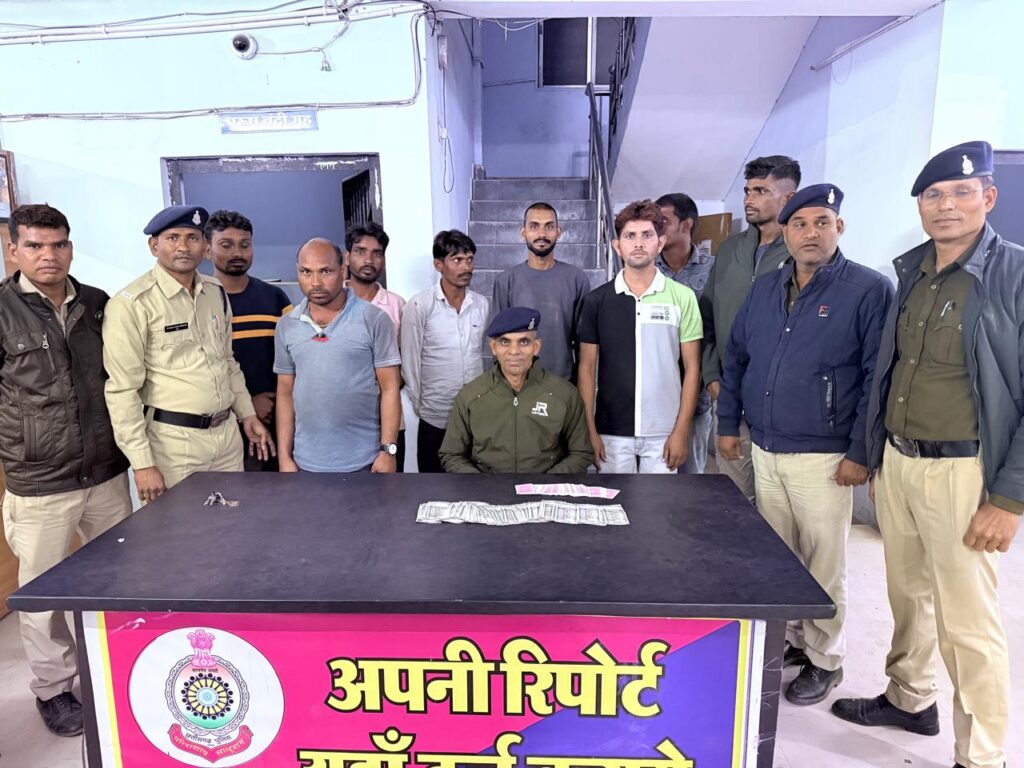 तिजराम साहू ब्यूरो मुंगेली :-दिनांक 28.12.2024 को पुलिस अधीक्षक श्री भोजराम पटेल (IPS) के द्वारा जुआ सट्टा आबकारी एक्ट अवैध रूप से गांजा तस्करी करने वालो के विरुद्ध कड़ी कार्यवाही करने निर्देशित किया गया परिपालन में अतिरिक्त पुलिस अधीक्षक श्री पंकज पटेल, अनुविभागीय अधिकारी श्री एस.आर.घृतलहरे के मार्गदर्शन पर थाना व साइबर सेल की टीम गठित कर मुखबिर सुचना पर 02 प्रकरण जुआ एक्ट की कार्यवाही की गई जिसमे ग्राम नवापारा खार में 1. शिवराज पिता सन्तु उम्र 37 वर्ष साकिन धनगांव 2 प्रदीप कुमार पिता विरेन्द्र उम्र 32 वर्ष निवासी मानिकपुर 3 अयोध्या जोशी पिता शिवराज उम्र 43 वर्ष निवासी ठक्कर वार्ड मुंगेली 4. भुवन आहिरे पिता मोहित उम्र 24 वर्ष 5. कृष्णा जांगड़े पिता मनोहर उम्र 31 वर्ष निवासी हेडसपुर 6. रामकुमार आहिरे पिता अमरदास उम्र 31 वर्ष निवासी I नवापारा मुंगेली 7. नरेश जांगडे पिता आत्माराम उम्र 33 वर्ष निवासी हेडसपुर 8 सुनील कुमार पिता अशोक कोशले उम्र 36 वर्ष निवासी चातरखार मुंगेली को आम जगह पर रूपये पैसे का दांव लगाकर काटपत्ती से हार जीत नामक जुआ खेलते पाये जाने से नगदी रकम 41900 रूपये जप्ती कार्यवाही कर आरोपीगण के विरुद्ध अपराध क 517/24 धारा छ ग. जुआ प्रति.अधि. की धारा 3(2) की कार्यवाही की गई व ग्राम खर्राघाट बड़े पुलिया के पास मुंगेली में आरोपीगण 1. इनदास भास्कर पिता महासिंग उम्र 54 वर्ष निवासी चातरखार 2. खुमानदास म्ानिकपुरी पिता अनुपदास उम्र 29 निवासी शिवाजौ वार्ड मुंगेली 3. बसंत उर्फ छोटा-पिता आनंद सोनकर उम्र 23 वर्ष निवासी रामगढ़ 4. रामगोपाल दुबे पिता रामकृपाल उम्र 40 वर्ष निवासी परहंस वार्ड मुंगेली को जुआ खेलते पकड़े जिनके कब्जे से नगद रकम 5210 रूपये 52 पत्ती तास अधजली मोमबत्ती माचिस जप्त कर आरोपीगण को गिरफ्तार कर आरोपीगण, के विरूद्ध अपराध क्र. 518/24 धारा छ.ग. जुआ प्रति.अधि. की धारा 3(2) की कार्यवाही की गई उक्त कार्यवाही में निरीक्षक संजय सिंह राजपूत प्रभारी सायबर सेल मुंगेली सउनि मधुकर प्र.आर. राजेश बंजारे दयाल गवास्कर लोकेश राजपूत यशवंत डाहिरे आर भेषज पाण्डेकर राजु साहू अतुल ठाकुर हेम सिंह, महेन्द्र ठाकुर गिरीराज सिंह, राकेश बंजारा की अहम भुमिका रही