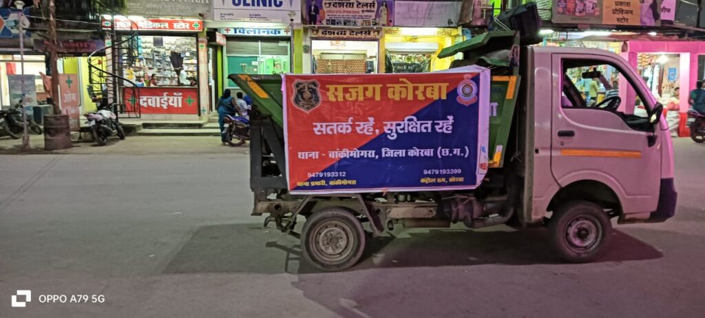 रवि शिवहरे ब्यूरो कोरबा :-पुलिस अधीक्षक के मार्गदर्शन में *सजग कोरबा* अभियान में दीपावली पर्व के मद्देनजर ऑडियो के माध्यम से उठाईगिरी, यातायात आदि की जानकारी देकर जागरूक किया जा रहा है।
