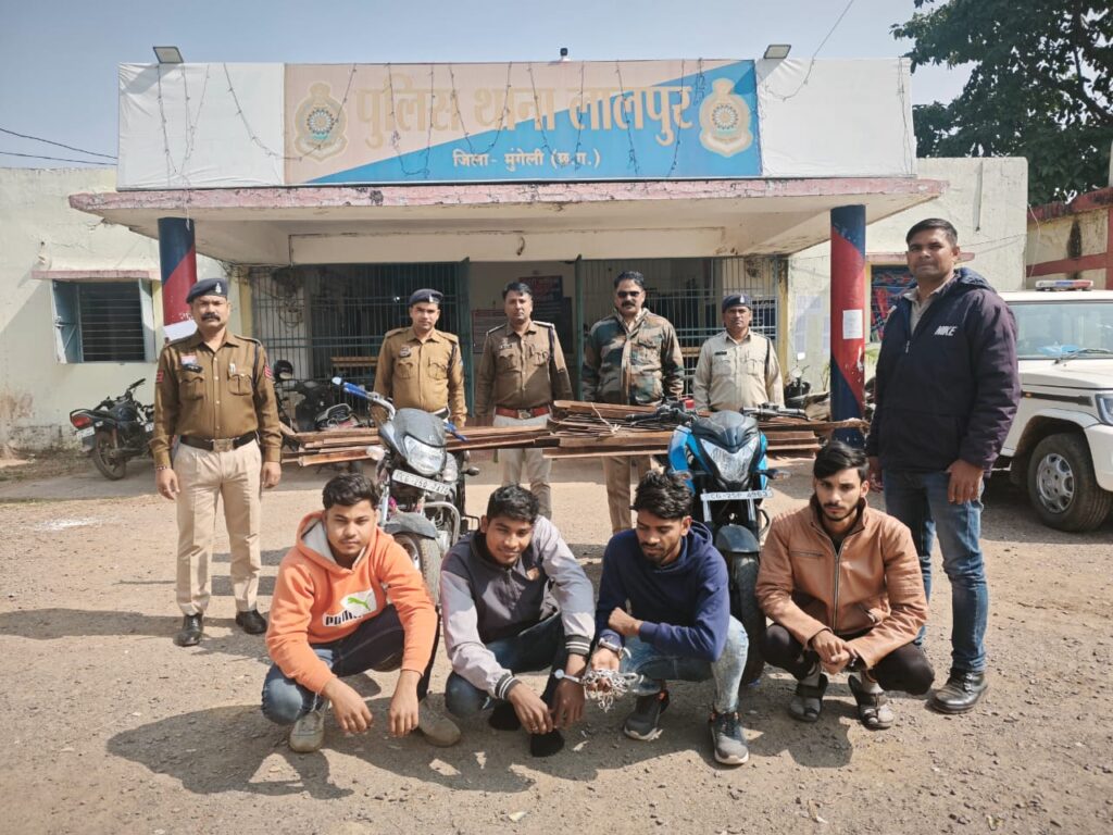 *गिरफ्तार आरोपी नाम -* 1.समीर भास्कर पिता बुधरूदास भास्कर उम्र 20 वर्ष 2. देवप्रसाद माथुर पिता मनोज माथुर उम्र 19 वर्ष 3. इन्द्रेश उर्फ सुरज बंजारे पिता माखन बंजारे उम्र 20 वर्ष सभी साकिनान ग्राम अतरगवां थाना नवागढ़ जिला बेमेतरा 4. मोहम्मद नवाब उर्फ अरमान पिता मोहम्मद नसीम उम्र 21 वर्ष साकिन हीरालाल वार्ड दाउपारा,लोरमी रोड मुंगेली थाना मुंगेली जिला मुंगेली (छ0ग0) व 01 अपचारी बालक