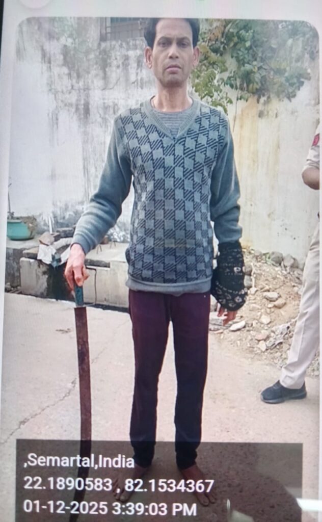 рдЖрд╢реАрд╖ рдХрд╢реНрдпрдк рдмрд┐рд▓рд╛рд╕рдкреБрд░ :- рд╡рд░рд┐рд╖реНрда рдЕрдзрд┐рдХрд╛рд░рд┐рдпреЛрдВ рдХреЗ рдирд┐рд░реНрджреЗрд╢рд╛рдиреБрд╕рд╛рд░ рдЕрдкрд░рд╛рдз рд╡ рдЕрдкрд░рд╛рдзрд┐рдпреЛрдВ рдХреЗ рдЕрд╡реИрдзрд╛рдирд┐рдХ рдХреГрддреНрдпреЛрдВ рдореЗрдВ рдЕрдВрдХреБрд╢ рд▓рдЧрд╛рдиреЗ рд╡ рдЙрдирдХреЗ рд╡рд┐рд░реБрджреНрдз рддреНрд╡рд░рд┐рдд рдХрд╛рд░реНрдпрд╡рд╛рд╣реА рдХрд░рдиреЗ рдХреЗ рдЕрдиреБрдХреНрд░рдо рдореЗрдВ рдерд╛рдирд╛ рдХреЛрдиреА рдкреБрд▓рд┐рд╕ рдХреЛ рджрд┐рдирд╛рдВрдХ 01/12/2025 рдХреЛ рдЬрд░рд┐рдпреЗ рдореБрдЦрдмреАрд░ рд╕реВрдЪрдирд╛ рдкреНрд░рд╛рдкреНрддреН рд╣реБрдЖ рдХрд┐ рдЧреНрд░рд╛рдо рд╕реЗрдорд░рддрд╛рд▓ рдзрд╛рди рдордВрдбреА рдХреЗ рд╕рд╛рдордиреЗ рдореЗрдВ рдПрдХ рд╡реНрдпрдХреНрддрд┐ рдЕрдкрдиреЗ рд╣рд╛рде рдореЗрдВ рддрд▓рд╡рд╛рд░ рд▓рд╣рд░рд╛рдХрд░ рдЖрдиреЗ рдЬрд╛рдиреЗ рд╡рд╛рд▓реЗ рд▓реЛрдЧреЛ рдХреЛ рдбрд░рд╛ рдзрдордХрд╛ рд░рд╣рд╛ рд╣реИ рдХрд┐ рд╕реВрдЪрдирд╛ рддрд╕реНрджреАрдХ рдПрд╡рдВ рдХрд╛рд░реНрдпрд╡рд╛рд╣реА рд╣реЗрддреБ рд╣рдорд░рд╛рд╣ рд╕реНрдЯрд╛рдл ,рдЧрд╡рд╛рд╣ рдХреЗ рд░рд╡рд╛рдирд╛ рд╣реЛрдХрд░ рдореБрдЦрдмреАрд░ рдХреЗ рдмрддрд╛рдпреЗ рд╕реНрдерд╛рди рдореЗрдВ рдЬрд╛рдХрд░ рдШреЗрд░рд╛рдмрдВрджреА рдХрд░ рдЖрдордЬрдиреЛрдВ рдХреЛ рддрд▓рд╡рд╛рд░ рд▓рд╣рд░рд╛рдХрд░ рднрдпрднреАрдд рдХрд░рдиреЗ рд╡рд╛рд▓реЗ рд╡реНрдпрдХреНрддрд┐ рдХреЛ рдкрдХрдбрд╝рд╛ рдЧрдпрд╛ рдкреБрдЫрддрд╛рдЫ рдХрд░рдиреЗ рдкрд░ рдЙрд╕рдиреЗ рдЕрдкрдирд╛ рдирд╛рдо рдЬрдп рдкреНрд░рдХрд╛рд╢ рдорд╛рдирд┐рдХрдкреБрд░реА рдкрд┐рддрд╛ рд╕реНрд╡ рд░рд╛рдорд╛рдпрдг рджрд╛рд╕ рдЙрдореНрд░- 39 рд╡рд░реНрд╖ рдирд┐рд╡рд╛рд╕реА рдЧреНрд░рд╛рдо рд╕реЗрдорд░рддрд╛рд▓ рдерд╛рдирд╛ рдХреЛрдиреА рдЬрд┐рд▓рд╛ рдмрд┐рд▓рд╛рд╕рдкреБрд░ рдХрд╛ рд░рд╣рдиреЗ рд╡рд╛рд▓рд╛ рдмрддрд╛рдпрд╛ рдЬрд┐рд╕рд╕реЗ рд╕рдордХреНрд╖ рдЧрд╡рд╛рд╣рди рдПрдХ рд▓реЛрд╣реЗ рдХрд╛ рддрд▓рд╡рд╛рд░ рдЬрд┐рд╕рдХреА рдХреБрд▓ рд▓рдореНрдмрд╛рдИ 34 рдЗрдВрдЪ, рддрд▓рд╡рд╛рд░ рдХрд╛ рдлрд▓ рдХреЗ рд╕рд╛рдордиреЗ рдХрд╛ рднрд╛рдЧ рддреЗрдЬ рдиреБрдХреАрд▓рд╛ рдмрд░рд╛рдордж рдХрд┐рдпрд╛ рдЧрдпрд╛, рдЖрд░реЛрдкреА рдЬрдп рдкреНрд░рдХрд╛рд╢ рдорд╛рдирд┐рдХрдкреБрд░реА рдХреЛ рдиреЛрдЯрд┐рд╕ рджрд┐рдпреЗ рдЬрд╛рдиреЗ рдкрд░ рдмрд░рд╛рдордж рд▓реЛрд╣реЗ рдХреЗ рддрд▓рд╡рд╛рд░ рдХреЗ рд╕рдВрдмрдВрдз рдореЗрдВ рдХреЛрдИ рдХрд╛рдЧрдЬрд╛рдд рдирд╣реАрдВ рд╣реЛрдирд╛ рд▓реЗрдЦ рдХрд┐рдпрд╛ редрдЬрд┐рд╕реЗ рдореБрддрд╛рдмрд┐рдХ рдЬрдкреНрддреА рдкрддреНрд░рдХ рд╕рдордХреНрд╖ рдЧрд╡рд╛рд╣рди рдЬрдкреНрдд рдХрд░ рдХрдмреНрдЬрд╛ рдкреБрд▓рд┐рд╕ рд▓рд┐рдпрд╛ рдЧрдпрд╛ ред рдЖрд░реЛрдкреА рдХреЛ рд╡рд┐рдзрд┐рд╡рдд рдЧрд┐рд░рдлреНрддрд╛рд░ рдХрд░ рдЙрд╕рдХреЗ рд╡рд┐рд░реБрджреНрдз рдерд╛рдирд╛ рдХреЛрдиреА рдореЗрдВ рдЕрдкрд░рд╛рдз рдзрд╛рд░рд╛ 25,27 рдЖрд░реНрдореНрд╕ рдПрдХреНрдЯ рдХреЗ рддрд╣рдд рдЕрдкрд░рд╛рдз рдкрдВрдЬреАрдмрджреНрдз рдХрд░ рд╡рд┐рд╡реЗрдЪрдирд╛ рдореЗрдВ рд▓рд┐рдпрд╛ рдЧрдпрд╛ рдХреЛрдиреА рдкреБрд▓рд┐рд╕ рджреНрд╡рд╛рд░рд╛ рдирд┐рд░рдВрддрд░ рдирд┐рдЧрд░рд╛рдиреА, рд╕реВрдЭрдмреВрдЭ рдПрд╡рдВ рдХрдбрд