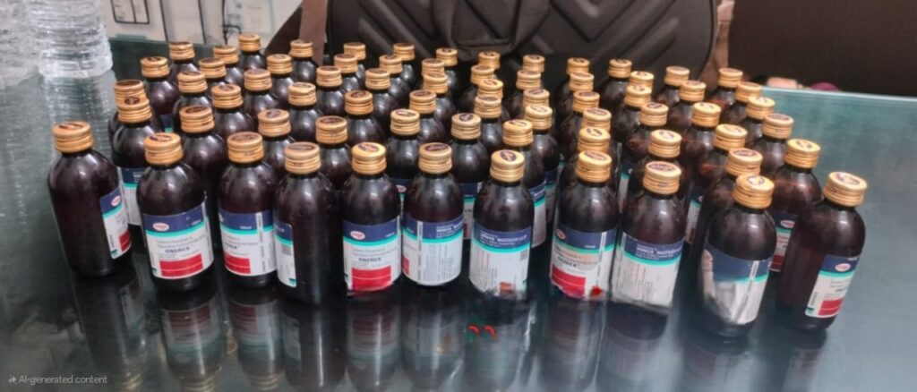 ЁЯСЙ рдмрд░рд╛рдордж рдХреБрд▓ 69 рдирдЧ рдХрдл рд╕рд┐рд░рдк рдХреА рд╢реАрд╢рд┐рдпрд╛рдВ, рдХреБрд▓ рдорд╛рддреНрд░рд╛ 6900 ML (6900 рдЧреНрд░рд╛рдо), рдЕрдиреБрдорд╛рдирд┐рдд рдХреАрдордд тВ╣6900/- рдХреЛ рд╡рд┐рдзрд┐рд╡рдд рдЬрдкреНрдд рдХрд░ рдХрдмреНрдЬрд╛ рдкреБрд▓рд┐рд╕ рд▓рд┐рдпрд╛ рдЧрдпрд╛ред