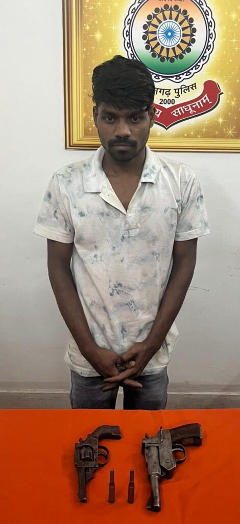 उपरोक्त आरोपियों से पूछताछ मे मिली जानकारी के आधर पर आरोपी कोमल पटेल पिता श्यामू पटेल उम्र 28 वर्ष निवासी पुरानी बस्ती पीपल चौक थाना कोतवाली कोरबा को राताखार के पास एक देसी कट्टा, एक देशी रिवाल्वर अपने पास रखकर बिक्री करने के लिए ग्राहक की तलाश कर रहा था कि सूचना पर पुलिस की टीम उक्त स्थान पर पहुँचकर कोमल पटेल के पास से एक देसी कट्टा एवं देशी रिवाल्वर एवं 02 नग कारतुस को पुलिस ने बरामद किया। आरोपी के विरूद्ध अपराध क्रमांक 183/2024 धारा 25 आर्म्स एक्ट के तहत गिरफ्तार कर न्यायिक रिमाण्ड पर भेजा जा रहा है।