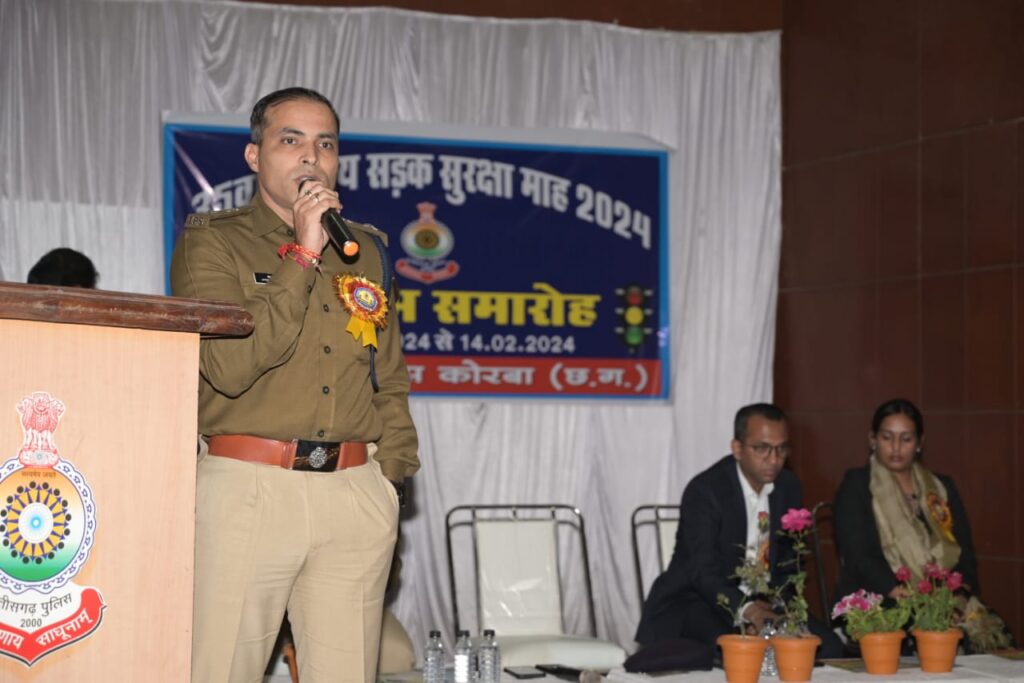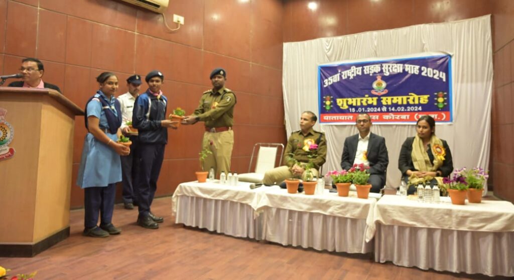 रवि शिवहरे ब्यूरो कोरबा:-पुलिस मुख्यालय नवा रायपुर के निर्देशानुसार एवं पुलिस अधीक्षक महोदय श्री जितेन शुक्ला के मार्गदर्शन पर आज 15 जनवरी को जिला कोरबा में राष्ट्रीय सड़क सुरक्षा माह 2024 का शुभारंभ गीतांजलि भवन पुराना बस स्टैंड कोरबा में आयोजित कार्यक्रम से किया गया। कार्यक्रम के मुख्य अतिथि कोरबा कलेक्टर श्री अजीत वसंत पुलिस अधीक्षक महोदय श्री जितेन्द्र शुक्ला नगर निगम आयुक्त प्रतिष्ठा ममगाई एवं नगर पुलिस अधीक्षक दर्री रॉबिंसन गुड़िया द्वारा मां सरस्वती के छायाचित्र समीप दीप प्रज्वलित कर औपचारिक रूप से जिले में सड़क सुरक्षा सप्ताह का शुभारंभ किया गया।