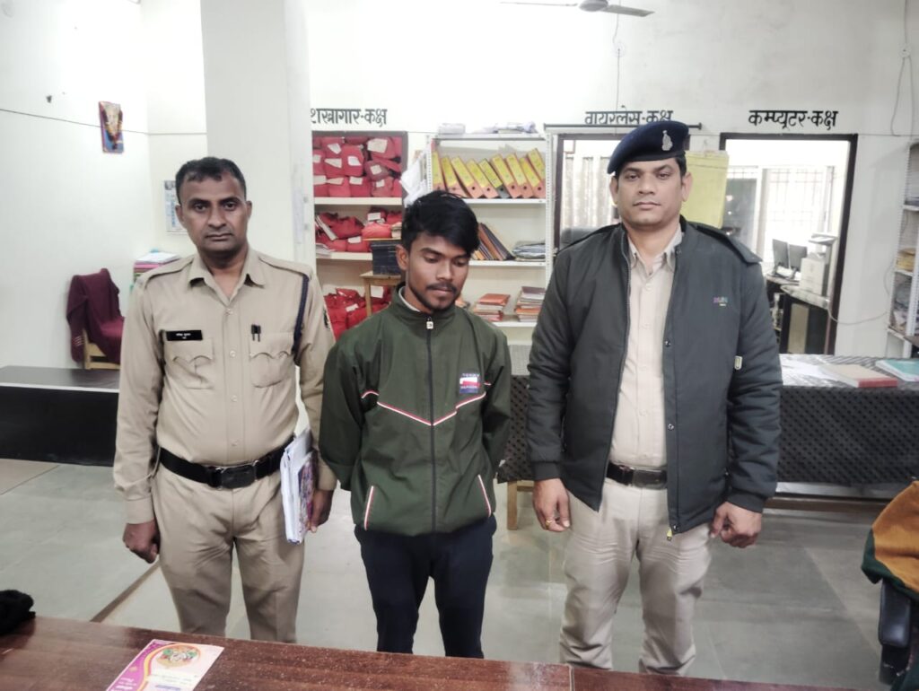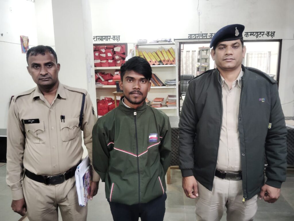 आनंद राठौर ब्यूरो शक्ति  – मामले का संक्षिप्त विवरण इस प्रकार है कि मामले में थाना मालखरौदा क्षेत्र की महिला दिनाँक 29.11.2024 को थाना उपस्थित आकर लिखित रिपोर्ट दर्ज करायी कि इसकी नाबालिक लडकी जिसकी उम्र 14 वर्ष को मामले का आरोपी सत्यम कुर्रे पिता सुकृत कुरै उम्र 20 वर्ष साकिन पोता जो कि नंबम्बर 2024 से लगातार आते जाते इसकी लडकी का पीछा कर तथा उसका रास्ता रोककर उसके साथ छेडखानी करना तथा किसी को बताने पर जान से मारने की धमकी देना जिस पर लडके को बार-बार समझाईस देने के बावजूद भी उसी तरह की हरकत करना बताने से पिडिता की माँ की रिपोर्ट पर आरोपी के विरूद्ध अपराध पंजीबद्ध किया गया तथा मामले की गंभीरता को देखते हुये श्रीमान पुलिस अधीक्षक महोदया सक्ती सुश्री अंकिता शर्मा (भा०पु०से०), अतिरिक्त पुलिस अधीक्षक महोदया सक्ती सुश्री रमा पटेल एवं श्रीमान अनुविभागीय अधिकारी पुलिस सक्ती श्री मनीष कुंवर के दिशा निर्देश पर तत्काल कार्यवाही करते हुये मामले के आरोपी सत्यम कुर्रे पिता सुक्कत कुर्रे उम्र 20 वर्ष साफिन पोता का पता तलाश कर आज दिनांक 30.11.2024 को गिरफ्तार कर न्यायिक रिमाण्ड पर भेजा गया है। उक्त कार्यवाही में थाना प्रभारी मालखरौदा निरीक्षक राजेश पटेल, उ०नि० सी०पी० कंवर प्र०आर० दामोदर जायसवाल, नान्ही यादव, महेन्द्र कंबर सेत राम पटेल, हरीश चन्दा अशोक साहू महिला आरक्षक पुष्पा सिदार का विशेष योगदान रहा।