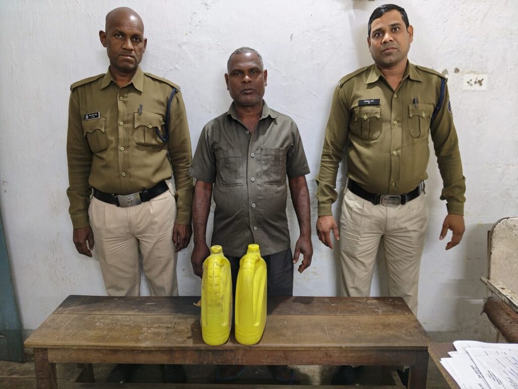 आंनद राठौर ब्यूरो सक्ति:-घटना का विवरण – मामले का विवरण इस प्रकार है कि नवपदस्थ पुलिस अधीक्षक सक्ती सुश्री अंकिता शर्मा महोदया द्वारा समीक्षा मिटिंग के दौरान जिले के सभी थाना प्रभारियो को अवैध शराब बिक्री एवं परिवहन करने वाले शराब कोचियों पर अंकुश लगाने हेतु अधिक से अधिक कार्यवाही करने की निर्देश पर अतिरिक्त पुलिस अधीक्षक महोदया श्रीमति गायत्री सिंह, उप पुलिस अधीक्षक महोदया श्रीमति अंजली गुप्ता सक्ती के मार्गदशन पर दिनांक 09.02.24 को टीम बनाकर जुर्म जरायम पतासाजी एव माइनर एक्ट कार्यवाही हेतु देहात रवाना हुये थे कि मुखबीर के सुचना मिला की ग्राम दर्राभाठा में चिंताराम कुर्रे के खेत के पास चारपारा मोहल्ला दर्राभाठा में चुनित राम कुर्रे नाम का व्यक्ति बिक्री के लिए अवैध रूप से कच्ची महुआ शराब रखा हुआ है कि सूचना पर गवाह एवं हमराह स्टाप के साथ घेराबंदी कर रेड कार्यवाही किया जहां पर एक व्यक्ति अवैध रूप से जरिकेनों में कच्ची महुआ शराब रखा हुआ मिला जिससे नाम पता पुछने पर अपना नाम चुनित राम कुर्रे पिता रामप्यारे कुर्रे उम्र 52 वर्ष निवासी वार्ड क्रं 3 दर्राभाठा थाना बाराद्वार जिला सक्ती (छ.ग.) का होना बताया जिसके कब्जे से 05 लीटर क्षमता वाली पीले रंग की 02 नग जरिकेन जिसके एक जरिकेन में 5 लीटर एवं एक जरीकेन मे 02 लीटर कुल 7 लीटर कच्ची हाथ भटठी महुआ शराब भरी हुई किमती 700 रूपये का मिला जिसे आबकारी एक्ट के प्रावधानो के तहत विधिवत कार्यवाही कर गवाहों के समक्ष के आरोपी चुनित राम कुर्रे के कब्जे से जप्त कर कब्जा पुलिस लिया जाकर मौके पर शीलबंद किया गया आरोपी का कृत्य अपराध धारा 34 (2) आबकारी अधिनियम का सबुत पाये जाने से आरोपी को गिरफ्तार कर रिमांड पर मान. न्यायालय पेश किया गया।