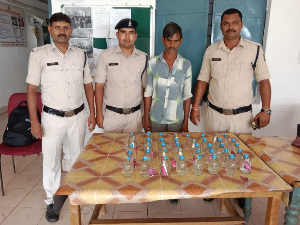मुंगेली पुलिस द्वारा नशे के विरूद्ध लगातार कार्यवाही की जा रही है। इसी क्रम में थाना सरगांव द्वारा मुखबिरों की सूचना पर सरगांव कॉलेज के पास दबिश देकर अवैध शराब बिक्री करने वाले आरोपी अक्षय गेंदले के कब्जे से 12.6 लीटर अवैध देशी मसाला शराब जप्त कर आरोपी को न्यायिक अभिरक्षा में जेल भेजा गया। इसी प्रकार थाना फास्टरपुर द्वारा ग्राम सिंघनपुरी में दबिश देकर अवैध शराब बिक्री करने वाले आरोपी अश्वनी साकत के कब्जे से 07 लीटर अवैध कच्ची महुआ शराब, थाना लालपुर द्वारा ग्राम बोधापारा में दबिश देकर अवैध शराब बिक्री करते आरोपी छांगन अंचल के कब्जे से 7.2 लीटर अवैध देशी शराब, थाना पथरिया द्वारा अटल चौक तिराहा में दबिश देकर अवैध शराब बिक्री करने वाले आरोपी कांशीराम के कब्जे से 5.2 लीटर अवैध देशी शराब, थाना मुंगेली द्वारा बुधवारी बाजार में दबिश देकर अवैध शराब बिक्री करने वाले आरोपी लेखराम सिंह के कब्जे से 05 लीटर अवैध देशी शराब तथा थाना चिल्फी द्वारा ग्राम हरदी धरमपुरा में दबिश देकर अवैध शराब बिक्री करने वाले आरोपी लक्ष्मीन बाई अनंत के कब्जे से 3.2 लीटर अवैध देशी शराब जप्त कर आरोपियों के विरूद्ध आबकारी अधिनियम के तहत कार्यवाही करते हुए आरोपियों को न्यायिक अभिरक्षा में जेल भेजा गया।