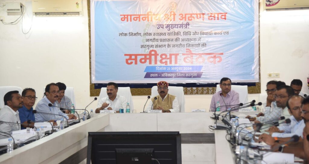 Raipur, //Deputy Chief Minister and Urban Administration and Development Minister, Shri Arun Sao, held a review meeting at the divisional headquarters in Ambikapur to assess the progress of development projects and the implementation of schemes across urban bodies in the Surguja division on October 21. The meeting took place at the Ambikapur Collectorate. Shri Sao emphasised the need for well-structured and systematic city planning. He instructed Municipal Corporation Commissioners and Chief Municipal Officers (CMOs) to collaborate effectively with engineers to ensure that all projects are completed on time without compromising quality. He stressed that the highest priority should be given to development and public facility improvements.