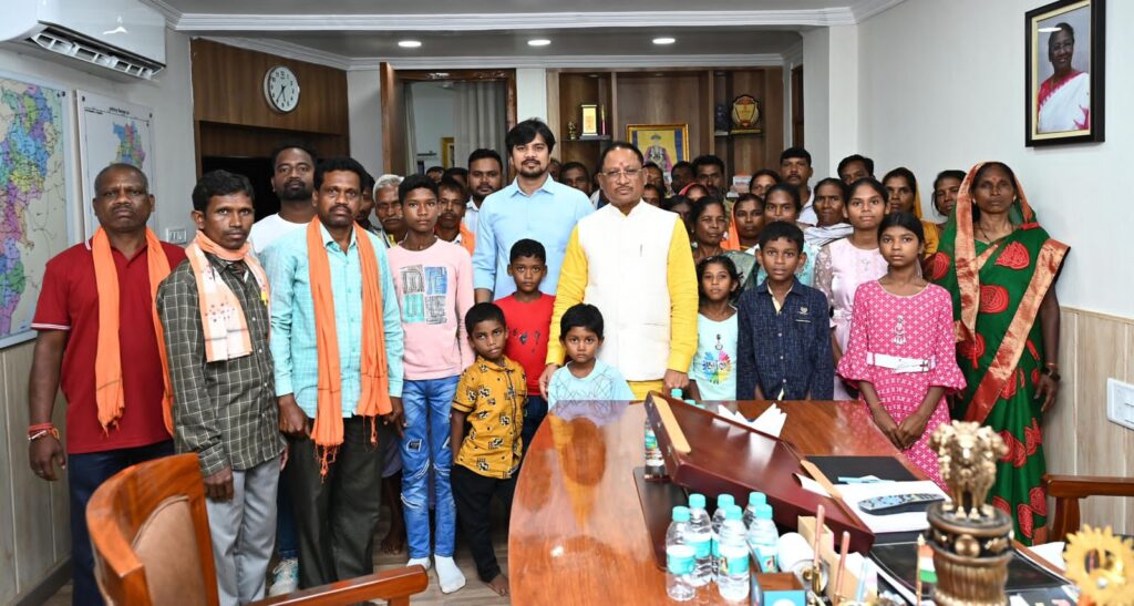 As per information, following the annual year trend, Panchs of Tamasingha, Bandarchua and dependent villages of Jashpur districts go on a tour to different areas of the state annually with their families. In this series, the delegation of Panchs along with their families, visited Chief Minister Shri Sai. Before meeting Shri Sai the delegation had already visited places like Maa Bamleshwari Temple Dongargarh, Shaheed Veer Narayan Singh Stadium, Jungle Safari, Ram Mandir and Purkhauti Muktangan in Nava Raipur.